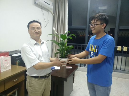 晚上八点,15自动化专业的党员同志带着同学们的心意来到自动化系老师方老师的办公室。新的学期刚刚开始,事务繁多,方老师依旧在校工作。看到学生的到来,老师和蔼可亲的脸上露出了熟悉的笑容。由于必赢国际本学期新搬入花津校区,同学们为老师带来一株茂盛的绿植,希望能够为这新的办公环境增添一抹绿意。同时,我们送上了同学们亲自书写的贺卡,上面承载着大家满满的祝福。同学们你一言,我一语,谈生活,谈学习,谈专业项目,谈职业规划,良师益友,交谈甚欢。