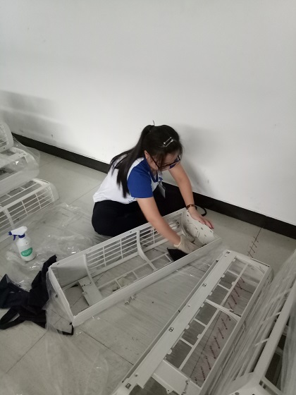 我们的各个小分队在分厂积极工作,体验工厂生活。物流部在工作人员的带领下解了成品调度科的工作流程,参观了各个成品库,并且认识了一些空调的型号和分类;控制器部门主要是学习参观了空调遥控器的制作过程,拓展了知识,并且参与了空调遥控器的部分制作过程;两器分厂则是了解两器的工艺流程和质检的具体要求,并参与了格力公司第一届春季运动会,与公司人员合影留念,留下了珍贵回忆;钣金喷涂的队员进行了工厂的细致参观,领悟工作流程;总装分厂负责产品的最后组装,我们的实践分队队员参与了一线的工作,体验了疏导片,上泡沫膜,贴标签的工作,体会了工厂生活;质量控制小分队队员在完成自己工作的基础上,去总装分厂帮忙检验室外机的状况;对于公司最忙的注塑分厂,我们的实践队员主要负责仓库卫生队打扫和待料的清洗工作,在钣金喷涂分队队员的帮助下,保质保量地完成了分配任务。