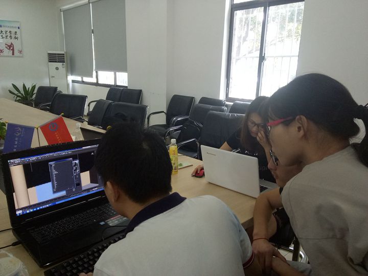自项目正式开展以来,园区内建筑的四面平面图已通过CAD软件绘画完成,并在指导老师的帮助下,完成建筑四面的拼接并基本整合成为3D模型,后期,我们将继续完善模型制作,从而令其更加逼真,以达到全方位呈现建筑原本面貌特征的效果。建模的过程并不简单,模型建立中很多核心技术难题都是在老师的帮助下解决,期间,队员们在一旁观看学习,做好笔记,并及时提出心中疑惑,最终也都得到了满意的解答。团队成员们分工合作,共同完成如拍下窗户玻璃门等实物照片的零碎工作,并在后期通过PS软件修改后剪接植入3D模型中,系列的工作都在有条不紊中进行着。伴随时间的流逝,项目中的诸多不足点正在逐渐完善,最终成果即将出炉。