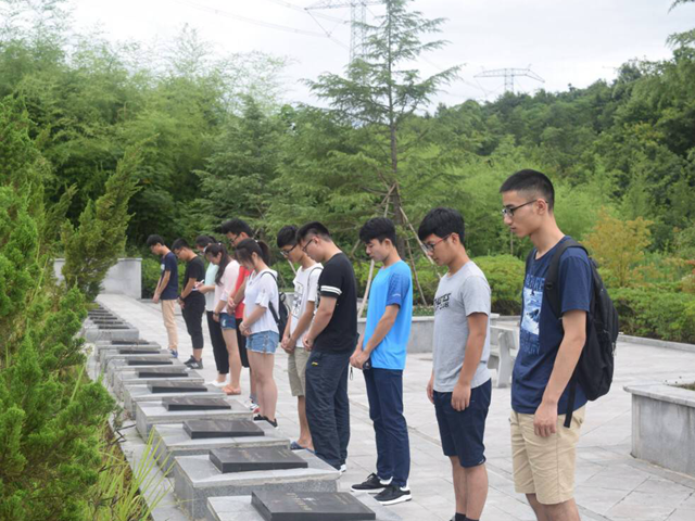 我们到达了六安实践第二站——张家店烈士陵园。必赢国际16光电的12名小伙伴六安实践小队于中午从六安各处集合于张家店烈士陵园,在一段时间步行,享受着一路的美景,蝉鸣,微风,来到了我们的目的地,张家店烈士陵园。走进烈士陵园,我们首先看见了巨大的纪念碑,上面写着大大的八一二字,并在其后又一个金色的星星,体现出我国军队的威严,巨大的纪念碑也体现出我国对先烈们的尊敬。纪念碑后面则是当年部分革命先烈的墓,想着其中埋葬着革命的先烈,我们的内心就升起了敬意,这敬意使我们在先烈的墓前驻足,默哀,以我们的方式向先烈们表达我们的敬意,并观赏了一番先烈陵园的美丽景色。