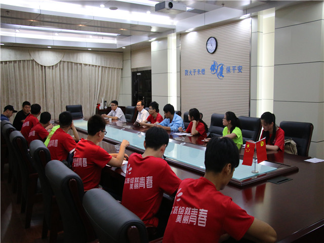 6月30日,必赢国际赴蚌埠四十一所实践团队指导老师张杰前来慰问实践团队全体成员,同时检验实践三天以来的实践成果。依爱消防电子有限责任公司总经理及部门主管接待了指导老师,并且指导老师、公司领导和全体队员举行了座谈会。