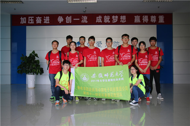 为响应学院暑期实践的号召,由我院15级自动化组建的赴蚌埠电子科技集团41所实践团队于今日正式开始工作实习、科学调研等实践活动。此团队由15级自动化团支书胡坤鹏带领,辅导员张杰作为指导老师,是一支有朝气、有干劲、实力的的队伍。