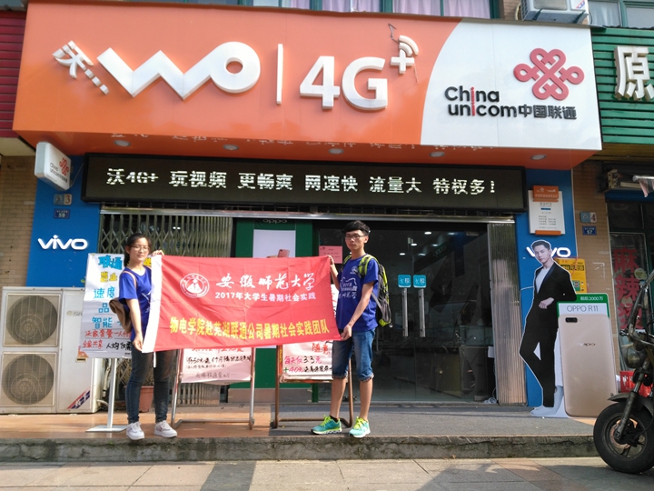 2017年6月29日,队员们伴随着清晨的第一缕阳光奔向自己的实践地点,载着对今天工作的期待和计划。镜湖区的队员积极参与了中国联通在芜湖的下个季度的业务培训。弋江区的三个队员上午分配到不同的营业厅,跟着社区负责人跑小区宣传,介绍宽带业务,一上午下来,腿又酸又痛,裸露在外的皮肤晒得通红。可是因为成功推销出自己的产品这些身体上的不适也消除了很多。下午我们在客服人员的指导下,对用户的套餐进行变更提醒。事情虽小但是从这些小事中学到了如何与人沟通和联通公司的客服机构。鸠江区的队员也不甘落后,勇敢地走向街头,利用自己的专业知识结合联通资费向人们推销产品。