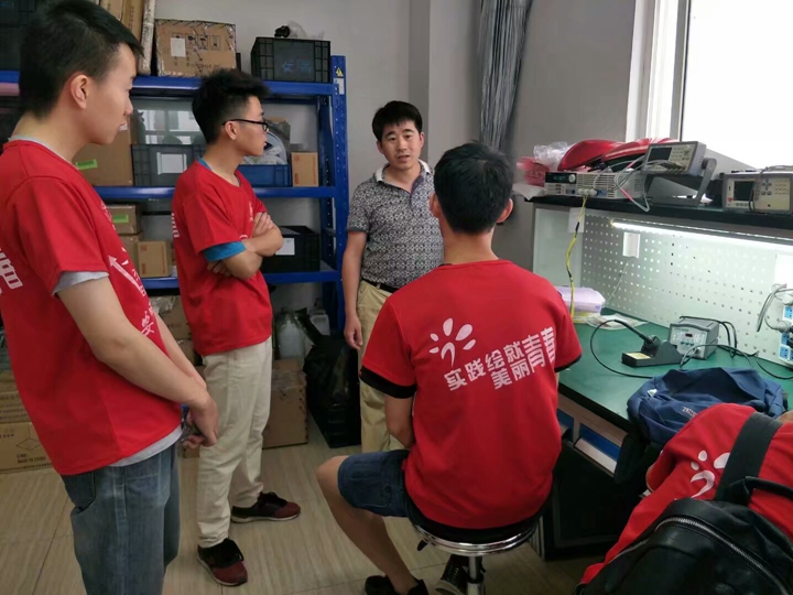 6月28日上午,8名队员在曹组长的带领下来到人事部参观学习,十分幸运的见识到了一场实实在在的人事部招聘过程。人事部招聘恰好到达最后一轮环节,两名组长与应聘者长达十五分钟的交流让同学们受益匪浅,认识到专业课中C语言、激光等科目的重要性。之后老师傅与第一组成员们讲解LED灯具中光电转换、电光转换之间的效率问题,19%与90%的对比是技术的有待提高也是同学们努力学习研究的动力。