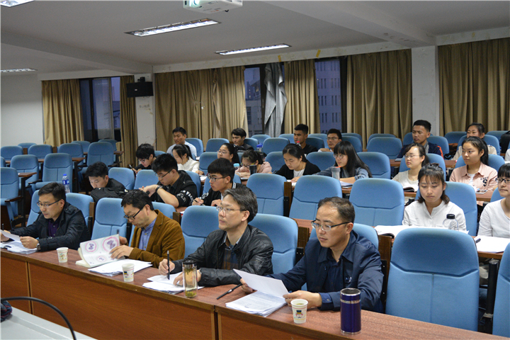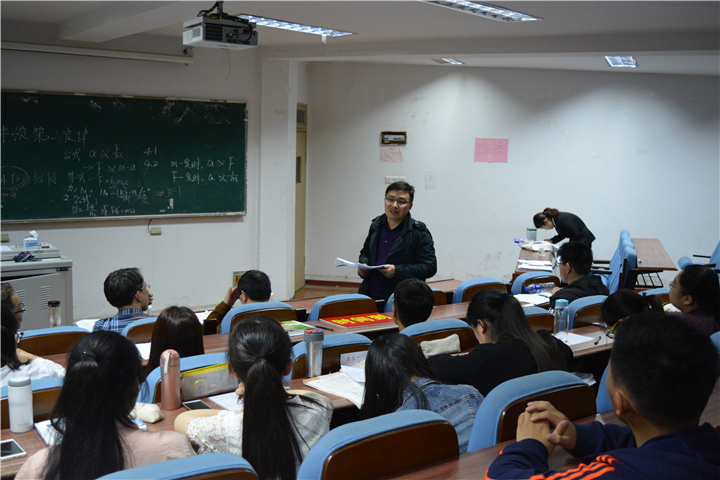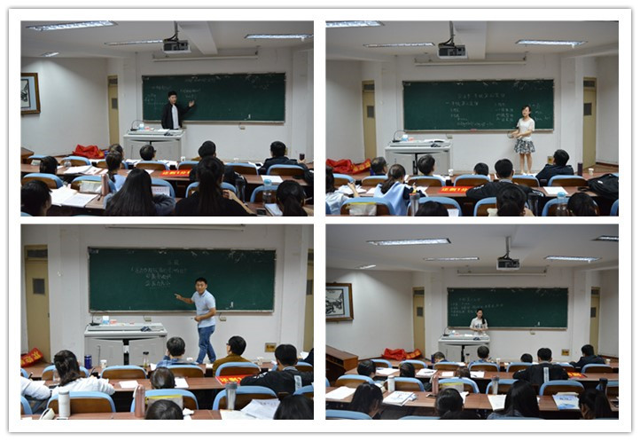 本次竞赛分为三个阶梯阵队,分别是14级,15级,16级物理学的本科生,共19人。此次比赛的范围是密度、压强(以上为初中内容);牛顿第二定律、超重与失重、动能定理(以上为高中内容)。比赛选手在其中选择一个选题进行模拟授课,时间6到8分钟。首先比赛的是14级物理学的同学。2014级的傅振兴同学用清晰流畅的语言讲授动能定理,赢得阵阵好评。2015级的刘辉同学声情并茂地将授初中物理压强内容,并且用问题一步步的引导学生进入物理情景中去。2016级的周佳康同学用自己丰富的情感和幽默的语言,感染在座每一个人的眼球。比赛结束,王长江老师首先进行点评。王老师从教师的语言、语气,板书,教学逻辑这四个方面对同学们的授课进行评价。王老师指出,同学们在教学过程中语速应放慢,讲授应有节奏,板书的标题应做到规范。随后汪老师进行补充点评,汪老师从竞赛的角度为同学们进行评价。汪老师指出同学们的教学目标要做到清晰明确,教学观念要体现学生的主体性,用一系列的问题,引导学生逐步思考,并且教师在教授时要加强与学生的互动,调动学生的积极性。