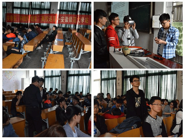 一些有关VR技术的有趣小视频拉开了本次活动的帷幕。活动分为三个环节,首先是宣讲人员详细介绍了科硕信息公司以及科硕创新学院的发展历程,主要涉及的技术邻域等。接着是来自合肥合工光魔有限公司创始人朱振宁来给我们大家详细介绍了有关AR、VR、LR的相关知识。同学们对于相关知识十分感兴趣,进行了积极踊跃的提问。最后是VR体验环节,大家纷纷有秩序地排队等候来体验一次真正的VR世界,虽然每个人仅仅有两分钟体验时间,但是却带给大家视觉上巨大的冲击,大家久久不能忘却。