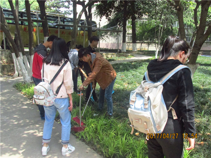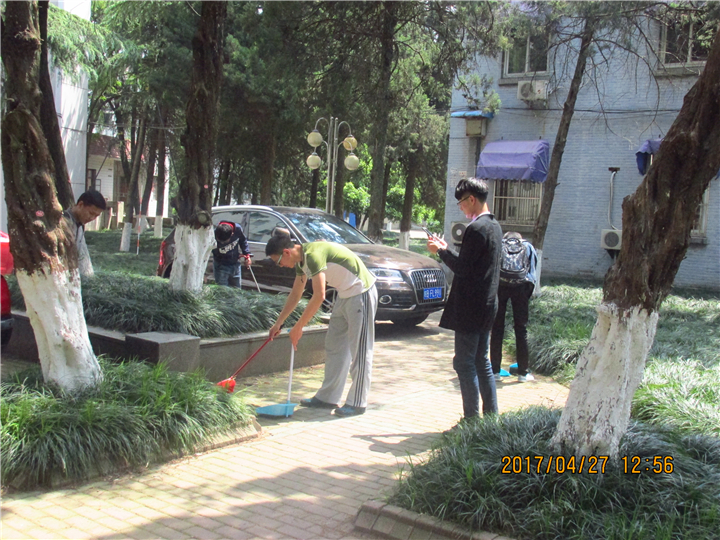 4月27日中午十二点五十,16级各班班长及生活委员按时来到物理楼一楼门口,工作人员考勤后,组织开展了清扫活动。所有人员分为两组,一组打扫物理楼左侧卫生区域,一组打扫行政楼前绿化区域。活动开始后,参与人员都尽心尽力打扫分配到的卫生区域,不怕苦,不怕脏,不放过任何垃圾,积极清扫。活动过程中大家热情高涨、齐心协力,很快打扫完了物理楼周围及卫生区域。虽然活动过程很短暂,但大家看着物理楼周围清洁的卫生环境,大家都无比欣慰。