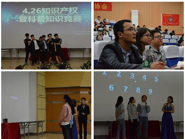 大学生发明创新协会从3月18日起就全员出动,利用传统媒体和新媒体等多种方式,通过派发传单,张贴海报,两微一端等社交媒体在赭山、花津两个校区进行广泛宣传。同时在4月11日到12日开设展台接受参赛人员报名,微信Myouth同步开放。积极充分的前期宣传引起各年级同学广泛关注,4月15日共有2400余人参加专利知识比赛初赛笔试,经过严肃认真的监考统分,最终遴选出10支代表队伍参加4·26”专利知识大赛决赛。