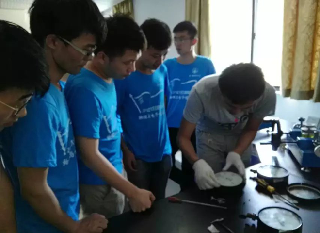 上午8:00,团队抵达实习地----繁昌县质量检验中心。首先团队成员集合,安全委员薛信斌给大家强调安全、纪律等问题,要求大家积极服从队长安排。然后队员们依次进入了实习检验中心,在质检中心接待人员的介绍下,队员们认识了检验中心检验员。随即大家一起来到了三楼气压仪器检验室,一进门队员们就被桌子上各种仪器吸引,检验员非常耐心的给队员们讲解了仪器的原理和操作方法。随后,检验员给队员们上了一节理论课,大家对仪器的了解又更进了一步。理论课程结束后,队员们开始自己动手实践,在检验员的指导和讲解下,大家成功的操作了仪器。