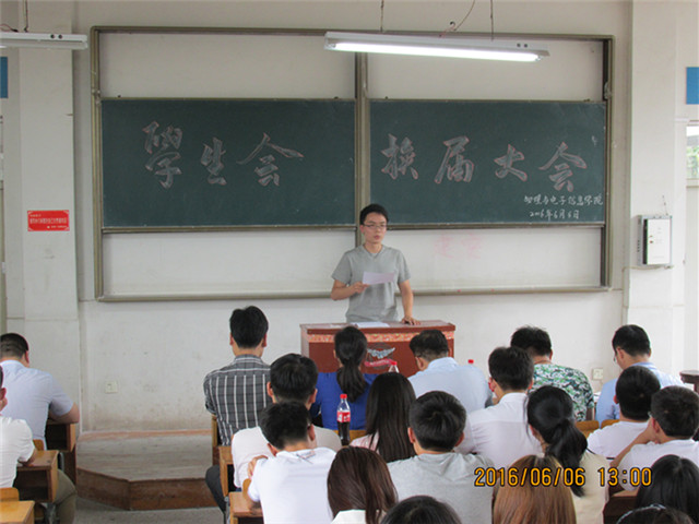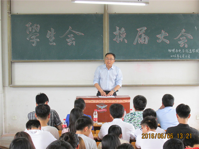 弘扬青春正能量,共创物电新明天。2015年6月6日中午,我院2015届学生会换届大会在物理楼3201教室隆重举行。院党委副书记吴长义,团委书记米佳佳,14级辅导员宋凤楼、汪光麒,15级辅导员徐玲、李亚及学生会全体成员参会。