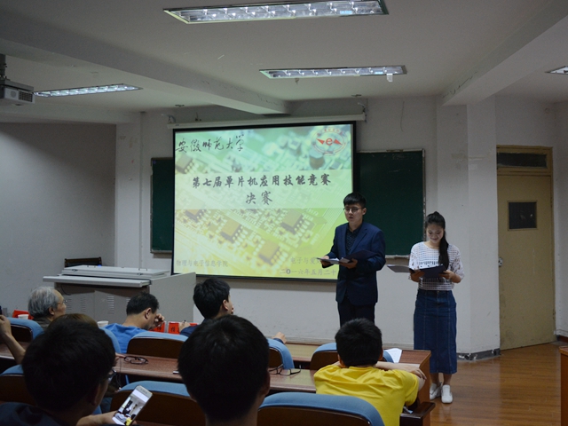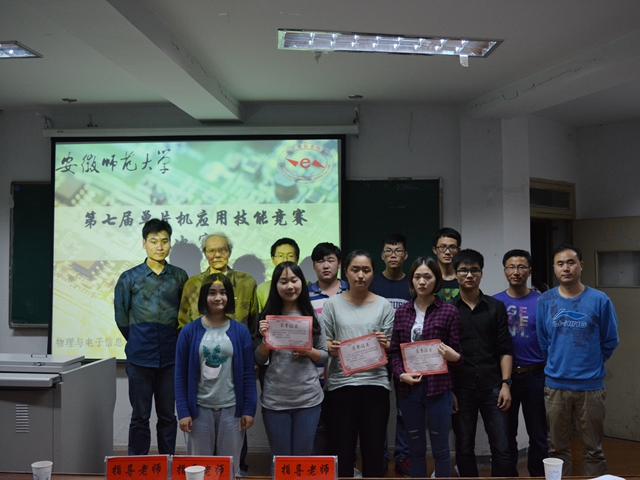 本网讯(电子爱好者协会)为营造良好科技制作氛围,激发我院学子创新实践热情,作为学院第八届“走进科学”科技文化节子活动,由院团委主办,电子爱好者协会承办的单片机应用技能竞赛于5月27日晚在行政楼三楼报告厅顺利落幕。本次比赛邀请了危启正教授、专业教师张道秧、协会指导老师蔺玉柱、团委书记米佳佳以及2015级辅导员李亚担任评委。