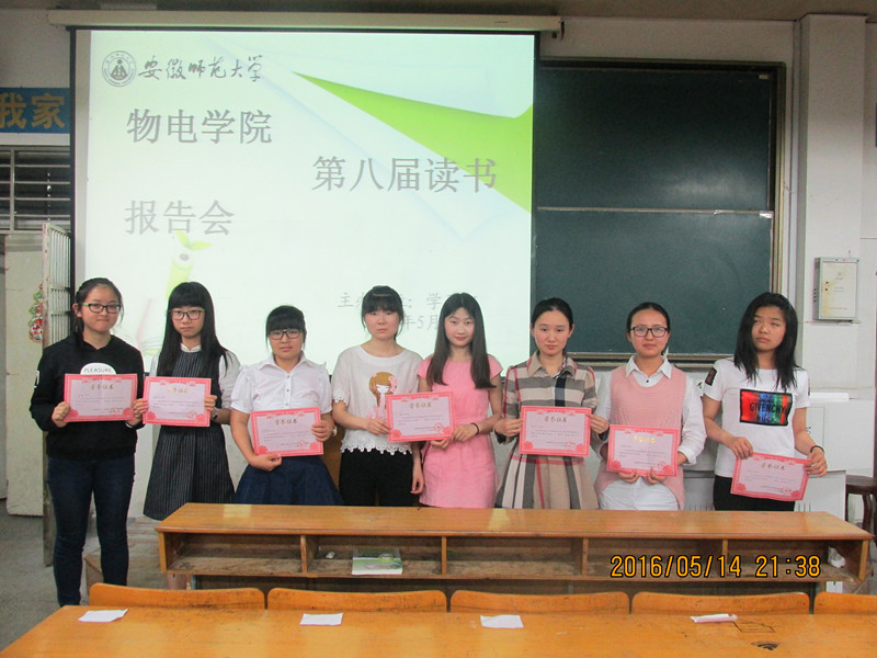 “热爱科学,好书共享”。为进一步丰富我院本科生人文素养,打造书香校园。由必赢国际学生会学习部主办的第八届读书报告会于2016年5月14日19:00在物理楼3301教室举行。院团委书记米佳佳出席了本次报告会,学习部部长汪叶梦担任本次活动评委。