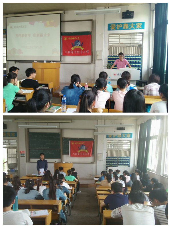 “万众创新,大众创业”激励当代青年勇于创新,乐于创新,创新是当代青年不可或缺的精神要素。为提高同学们敢于创新的意识,5月4日下午,2015级电子信息工程班委组织同学们开展了五四创意分享秀活动,活动由团支书宋银银主持。
