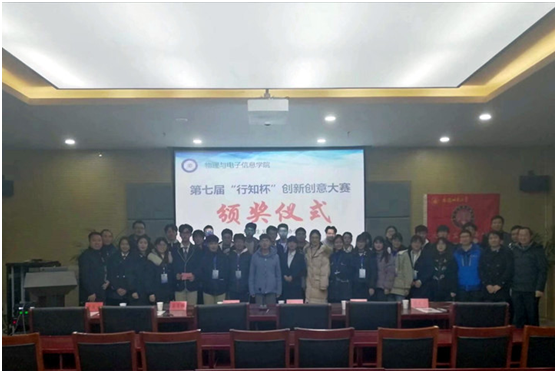 比赛结束后刘小明老师进行了点评。首先肯定了肯定了各位参赛选手丰富多彩的优秀创意,同时对同学们提了三点要求,一是要大胆设想,要将大胆创新贯彻到底,敢想才有敢做。二是要踏实做事,努力学好专业课程,打牢基础知识,将想法付诸实践。三是要高调汇报,认真打磨PPT及汇报稿,将自己的成果充分展示出来。活动结束后,获奖学生及工作人员与老师合照留念。