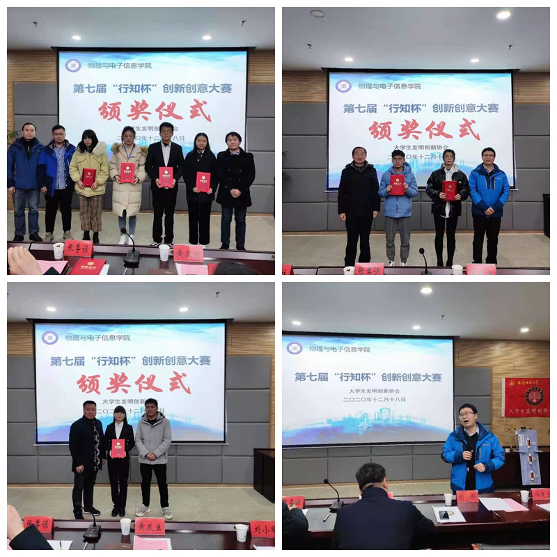 本网讯(必赢国际 张津源)创新百变,奇异自显。2020年12月18日晚,由必赢国际团委主办,大学生发明创新协会承办的第七届“行知杯”创新创意大赛决赛于必赢国际304报告厅举行。必赢国际党委副书记黄友生、物理专业负责人张季谦、电子专业负责人刘小明、工科实训中心主任蔺玉柱、学院专业教师冯友宏、卢自宝以及协会指导教师张津源担任本次大赛评委。校学生会、校社联、协会全体理事以及近百位拥有创新创意热情的同学们到场观看比赛。