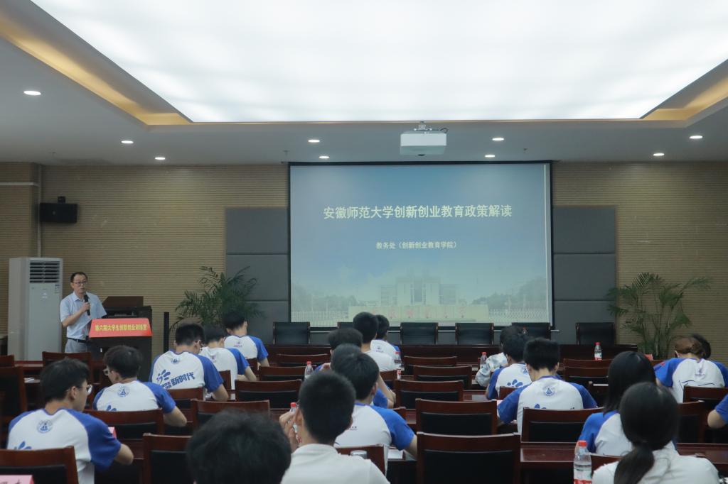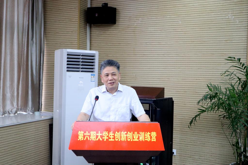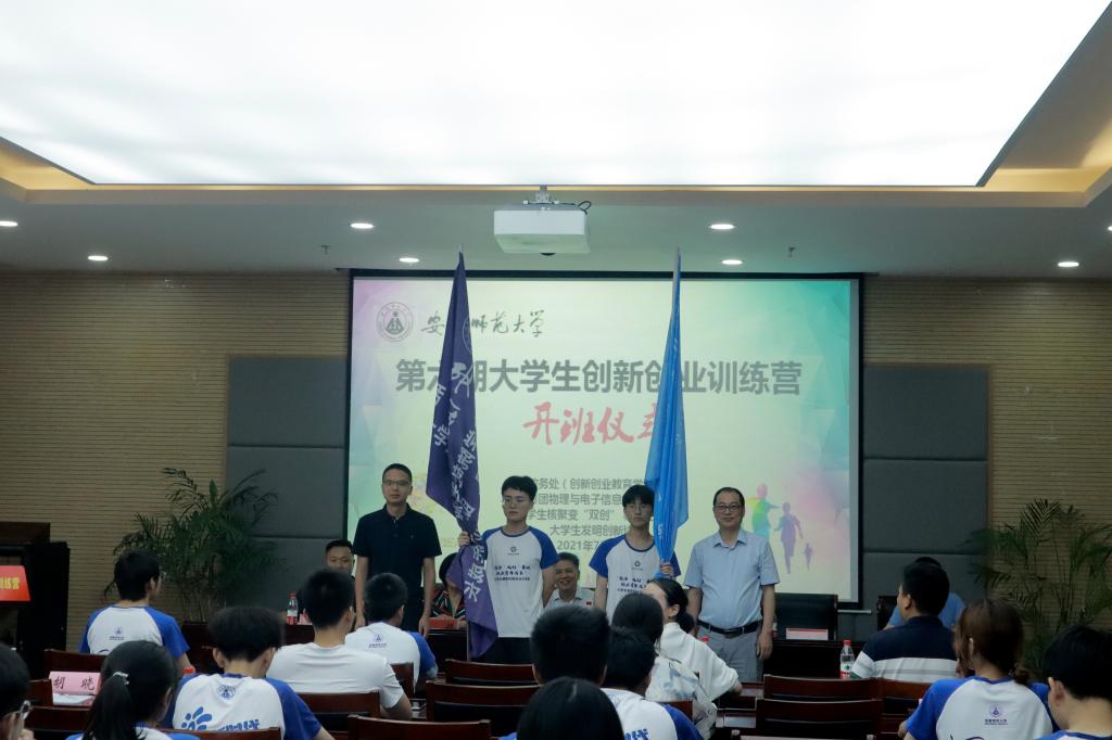 陆林作总结讲话。他强调,青年是国家和民族的希望,创新是社会进步的灵魂,未来属于青年,希望寄予青年。对全体学员提出建议和希望:要培养创新创业兴趣,兴趣对一个人的成长和发展有至关重要的作用,在学习和交流的过程中培养创新兴趣,促进自我能力提升,这是迈向成功的重要开始。要砥砺艰苦奋斗精神,创新创业不是一蹴而就的,在过程中要做到理想坚定,不怕困难,勇于开拓,顽强拼搏。要展现青年学子才华,“双创”训练营是起点,不是终点,要将自己所学应用到实践中去,在大众创业、万众创新的时代洪流中奏响青年大学生的乐章。 最后,汪凯、李汪根为暑期创新创业训练营实践团队授旗。开班仪式后,校教务处(创新创业教育学院)李汪根副处长为学员们带了培训第一讲。