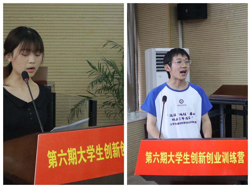 上一期学员代表、2018级自动化专业耿秀侠同学给大家分享了她在第四期“双创”训练营的学习心得以及参加训练营给她带来了一系列变化——善于观察、热爱思考、注重培养自己的创新思维等。本期学员代表、2019级计算机科学与技术专业的詹晟同学代表全体学员郑重承诺,服从双创班管理,踏实努力学习,担当时代责任,做有为的“双创”青年。
