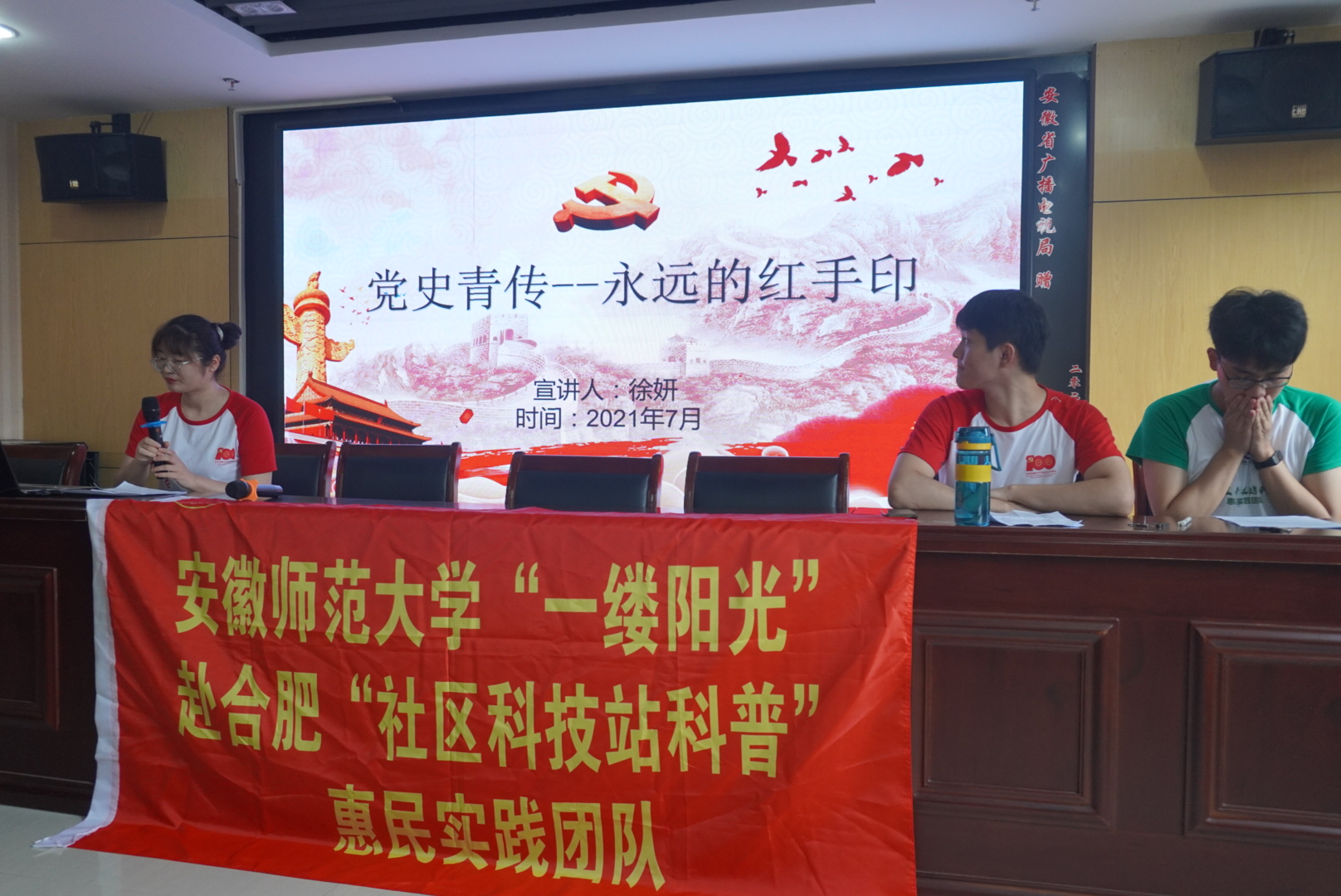 必赢国际赴合肥“社区科技站科普”惠民实践团队来到中央城社区,将党史与科普结合起来开展宣讲,深入群众传播创新精神与实践能力。团队成员徐妍带来 “焦裕禄精神”宣讲,她讲到:“历经半个多世纪的焦裕禄精神仍熠熠生辉,体现了中国共产党人坚持自我革命的奋斗精神和实现中华民族伟大复兴的时代要求。”实践团队成员将党的精神学习内化于心,外化于形。在传播讲话精神的同时,不断提升思想认识水平,更加全面认识党史学习教育的意义。