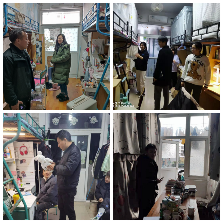 走访传叮咛,排查宿舍安全 12月2日以来,辅导员深入学生宿舍,重点对学生宿舍是否存在违规使用电器、私拉乱接电线问题以及是否存放易燃易爆物品等问题进行了详细的安全排查和整治。从检查结果来看,大部分学生宿舍情况较好,床铺及生活用品整齐美观,宿舍内无违禁电器,安全管理制度较完善。