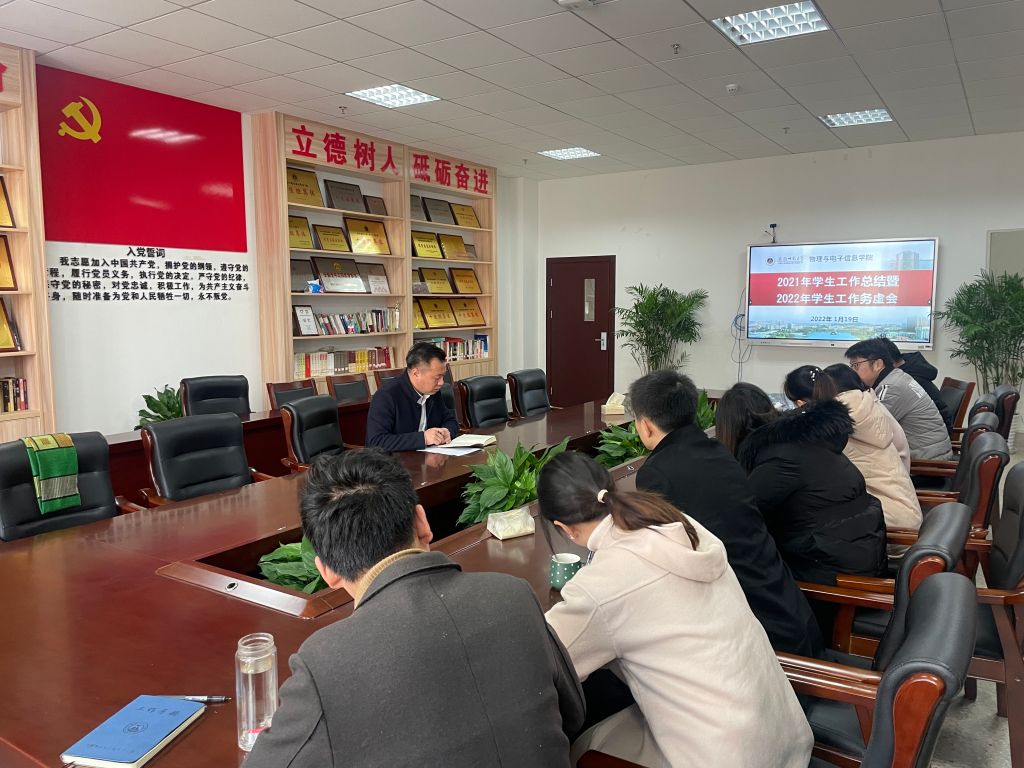 1月19日,必赢国际在物理楼308会议室召开2021年学生工作总结暨2022年学生工作务虚会,总结回顾2021年度学生工作,谋划部署新学年工作。全体专兼职辅导员参加会议,会议由学院党委副书记黄友生主持。