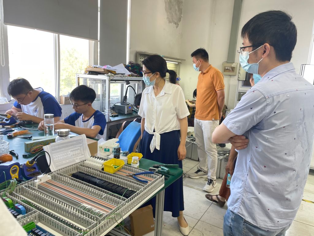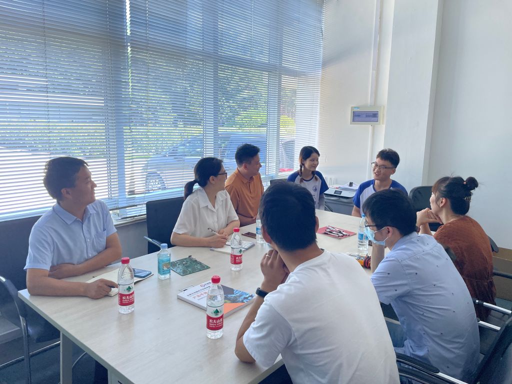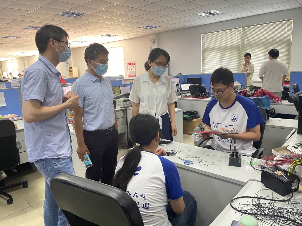 随后,张爱清一行来到麦可威电磁科技有限公司,因实践队员仍在认真培训,领导老师们不忍耽误同学们宝贵学习时间,与王敏就学生实践情况、目前公司发展以及未来合作等方面进行了简短交流。