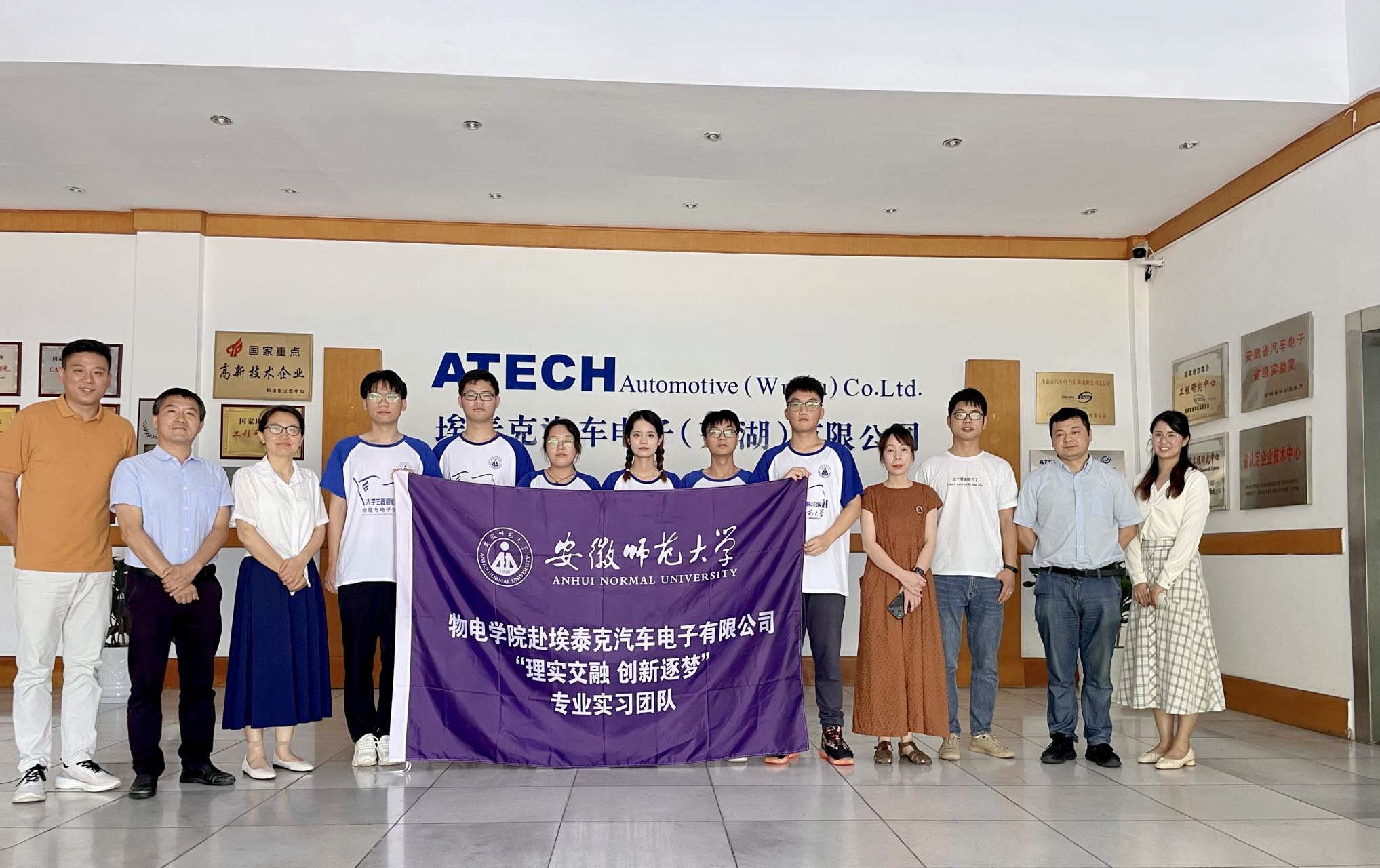 7月8日上午,必赢线路检测3003必赢国际副院长张爱清、团队指导教师冯友宏、辅导员张津源、李慧芳一行来到芜湖市埃泰克汽车电子有限公司和麦可威电磁科技有限公司看望慰问必赢国际“理实交融,创新逐梦”赴芜湖市企业专业实习团队。埃泰克汽车电子有限公司研发硬件部总监程敬晔、必赢线路检测3003校友、总工助理李祥、软件部经理郭雅杰、人事部经理侯晶晶和麦可威电磁科技有限公司人事总监王敏等热情接待张爱清一行。