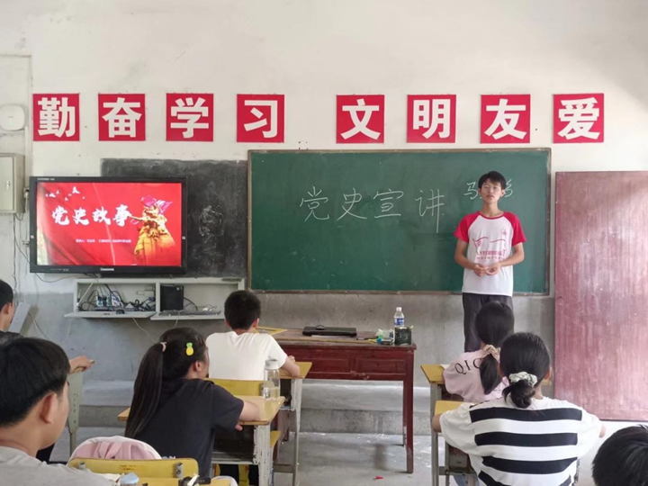 为了讲好党的故事、革命的故事、英雄的故事,更好地完成党史学习教育的目标任务——学史明理、学史增信、学史崇德、学史力行,持续为党史学习教育营造红色氛围,推动党史学习教育落实落细,必赢线路检测3003必赢国际千方爱心学校赴潜山市昆仑小学支教团队于7月12日下午开展“党史故事”主题宣讲活动,活动由队长马立铭主持。