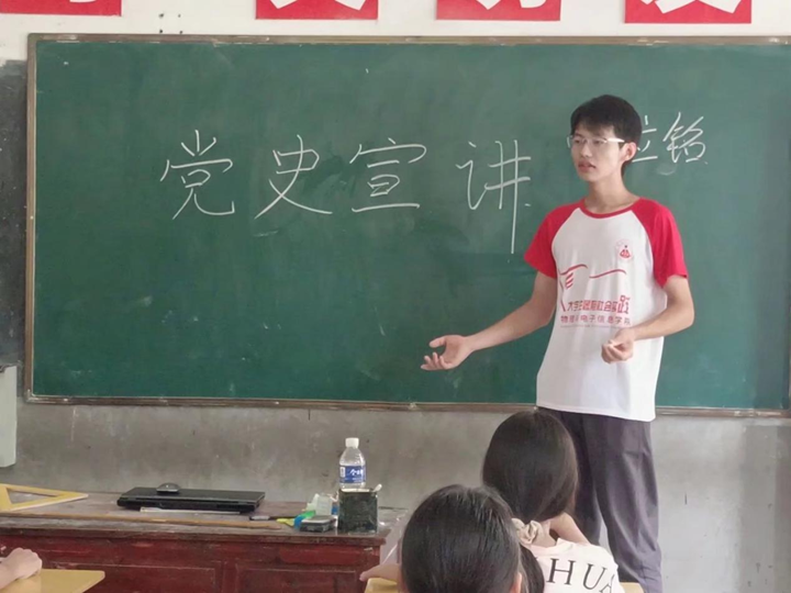 讲好红色故事,传承红色基因。为了让宣讲内容入脑入心,队长马立铭精心设计,力求讲述生动、鲜活可感。他为学生们讲述了中国共产党走过的百年光辉历程,缓缓道出的红色事迹,让大家的思绪重新回到了那段峥嵘的革命岁月,感悟着故事里革命前辈的心路历程和家国情怀,在每一个同学心里种下一颗红色的种子。