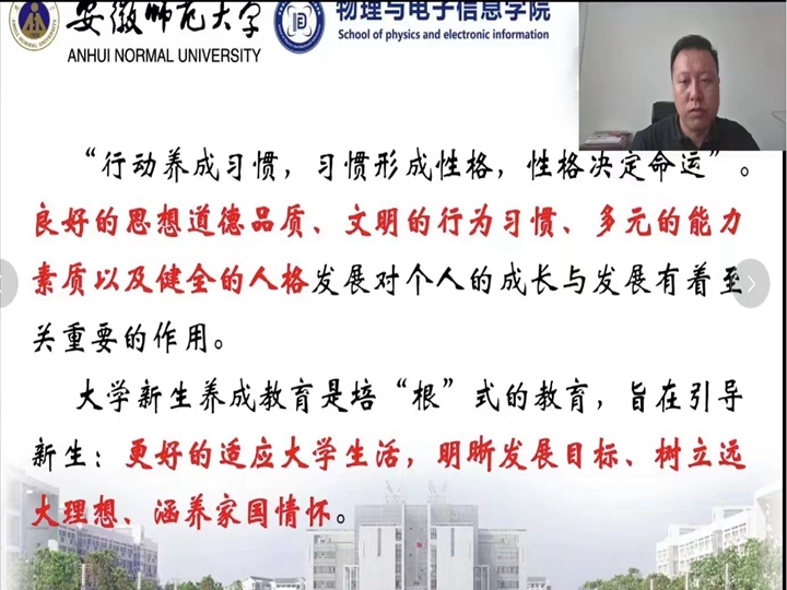 “行动养成习惯,习惯形成性格,性格决定命运”,大学新生养成教育是培“根”式的教育。为了引导新生更好的适应大学生活,明晰发展目标、树立远大理想、涵养家国情怀,必赢国际党委副书记黄友生依托新媒体平台,以“新生养成教育“为主题,提出新生养成教育的十条主线,为全体2022级新生开展了一堂别开生面的大学“先修课”。