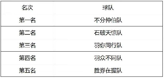 (图为本次比赛排名情况) |