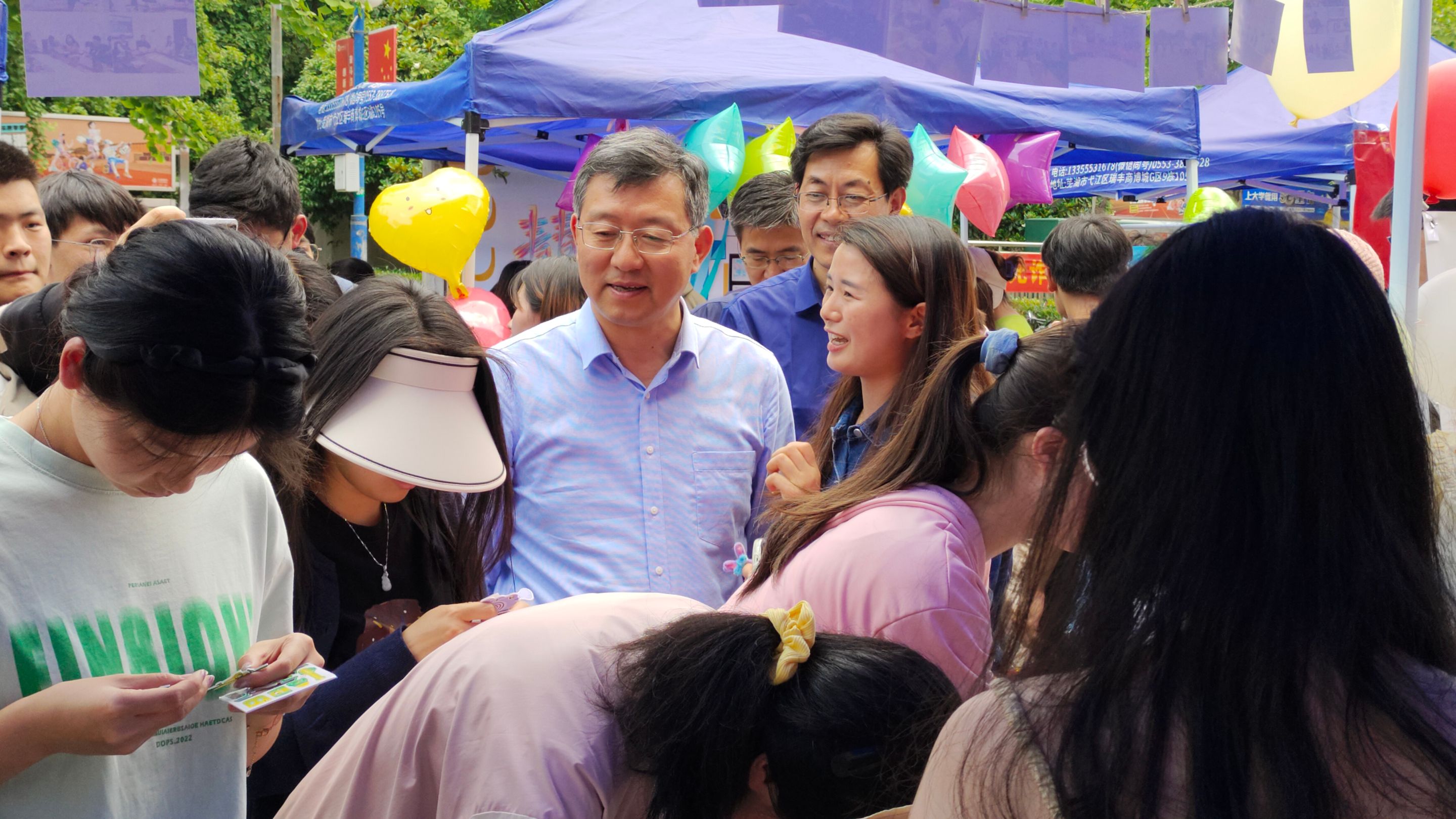 5月25日,在学校心理健康中心的统一组织下,学院发展辅导站以“青春实验室”为主题,立足专业特色,在二食堂广场开展了“解忧”黑板、“奋斗”电荷、“积分”模型和“偏见”便签趣味体验活动,参与同学可通过温馨小屋闯关集卡兑换精美礼品。活动吸引了兄弟学院的学生驻足观看、排队体验,同学们在体验游戏的同时既学习心理知识,又释放心中压力。校党委副书记周旭、学工部(处)部长邵登辉一行来到学院活动站台,与同学们亲切互动,在欢声笑语中巩固我院心理健康知识教育成效。