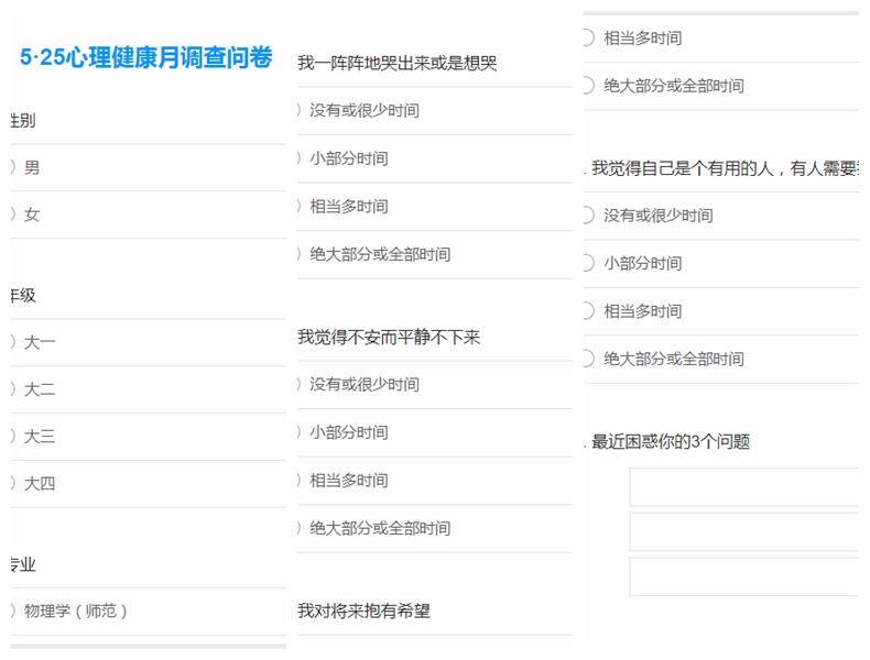 没有调查就没有发言权,没有调查就没有决策权。为助力心理健康精准育人,在活动开展之初,发展辅导站依托“问卷星”平台定制“5·25心理健康月调研问卷”并在班级发布。根据调研分析结果,学院立足学子成长所需,持续组织开展“教授面对面”育人品牌活动,邀请学院陆洲教授和汤萍萍副教授作为嘉宾,聚焦“专业学习,进退得失,未来发展”等方面对话青年学子”,帮助同学解决学习和生活中的困惑,鼓励同学们争做积极乐观、健康向上、刻苦勤奋、自律自强的新时代大学生。