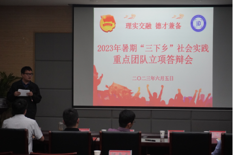 本次暑期“三下乡”社会实践重点团队共18支团队申报,团队负责人依次上台,结合PPT围绕团队基本概况、实践准备、活动组织、经费预算、安全预案等方面进行汇报。汇报项目涉及理论宣讲、竞赛集训、支教帮扶、趣味科普、社会调研、志愿服务等多方面内容。各团队根据专业特色和学院品牌设计实践内容,并结合预期目标、团队优势等方面详细阐述了实践项目的可行性。