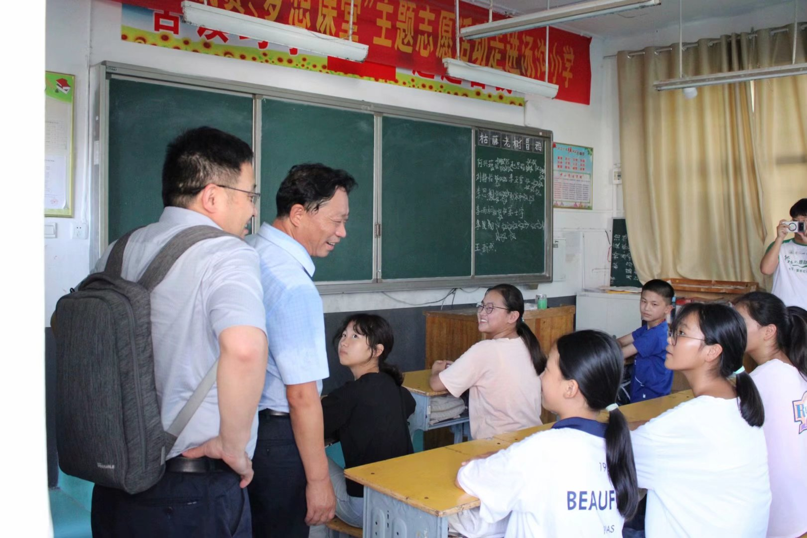 炎炎夏日,千方爱心支教团队社会实践活动正如期进行。为深入了解学生暑期社会实践开展情况,对实践过程中所遇到的问题及难处提供意见和指导,7月10日下午,必赢线路检测3003必赢国际行政副院长张其芳,物理教师教育教研室主任汪志荣,辅导员刘敏、谢陈赴阜阳市汤沟小学看望慰问暑期社会实践学生。
