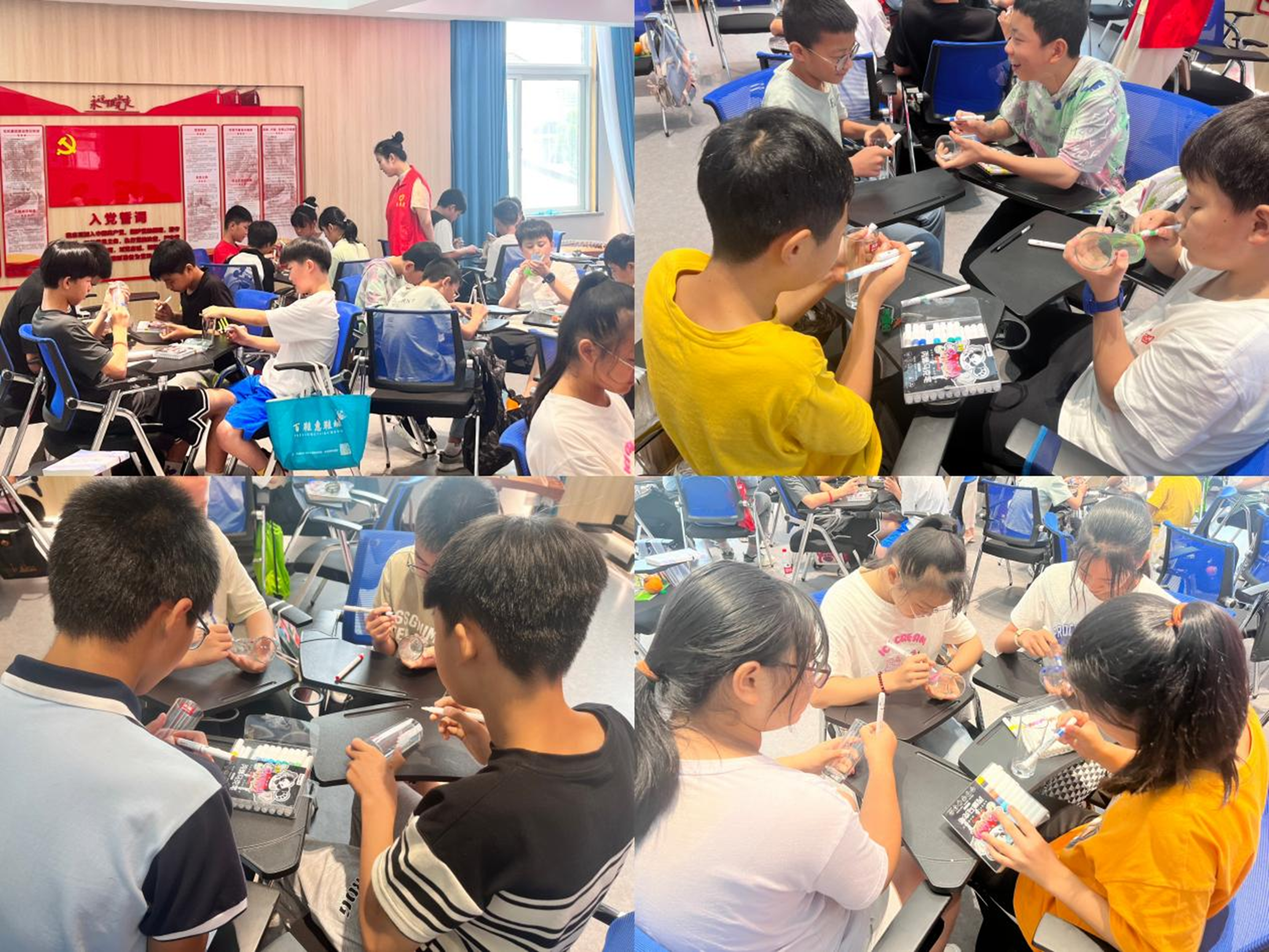 活动当天,同学们早早来到现场,工作人员向他们分发了玻璃杯和手绘工具。专业老师首先给大家讲解了绘制杯子的技巧及注意事项,在老师的指导下,同学们各自选定了彩绘主题,经过细心勾边、调色,一个个栩栩如生的图案在玻璃杯上展现,普通的玻璃杯摇身变为精美的艺术品。绘制过程中,大家交流探讨、相互欣赏,每个人脸上都洋溢着成就感满满的笑容,整场活动在轻松愉快的氛围中结束。