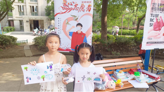 童心彩绘,加强结核认知。秉承着“终结结核,守护健康”的初心,2023年7月1日和7月2日,团队分别在丽城社区和翰林社区开展结核病宣传活动,本次活动主要对象为儿童,为提升小朋友们对结核病相关知识的学习兴趣,我们采用游戏知识相结合,根据名次发放奖品的方式,组织了一系列小游戏。7月1日,恰逢建党节,我们组织进行了建党结核大转盘的游戏,将党史与结核知识融入到游戏当中,弘扬爱国爱党精神的同时,也向小朋友们科普了结核防治知识。同一时间,我们也组织进行了儿童简笔画活动,给每位小朋友画纸画笔,让他们从中国共产党和结核防治两个主题中任选其一,画出自己的想法。小朋友们都热情高涨,有画国旗的,有画自己想象中肺结核的样子的,中途也有队员向小朋友们科普党史和结核防治知识。在画画的过程中,小朋友们既抒发了自己的爱党热情,了解了更多党史,又对于结核防治有了深刻认识。