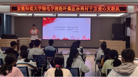 在六安市孙岗乡文明实践站,“理响江淮”宣讲团成员、千方爱心学校赴六安叶集支教团队带队老师魏潘晨正在向孩子们讲述革命英雄故事。“狱中笔墨明心志,红心只为‘可爱的中国’,方志敏在伟大而又短暂的一生中,坚守信仰、甘于清贫、严于律己,被捕期间用赤诚热烈的革命文字,满载信仰与生命的重量,穿透敌人的铜墙铁壁,鼓舞着一批批共产党人接续奋斗!”。青春孕育无限希望,青年创造美好明天,中华民族伟大复兴的接力棒终有一天要交给这帮生在乡村里、长在田野间的孩子们,必赢国际将党史故事融入课堂教学,帮助乡村学生树立正确人生价值观,传承红色基因,赓续红色血脉,听党话、感党恩、跟党走,争做新时代好青年。