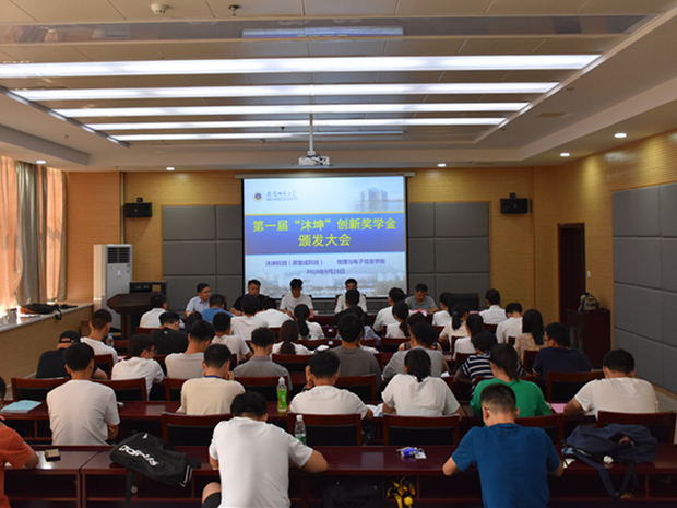 谷鹏程先生代表沐坤科技有限公司讲话。他从“沐”、“坤”二字的名字缘由开始介绍了公司的基本情况和文化建设,特别提到了沐坤科技重视创新精神和创新能力的培养,沐坤集团捐资助学的行为也是沐坤集团重视社会责任,为社会培养具备求真务实、创新引领精神的人才的一贯做法。他希望每一位获奖的同学都能够保持昂扬的创新精神,不断提高自身的创新水平和创业能力。