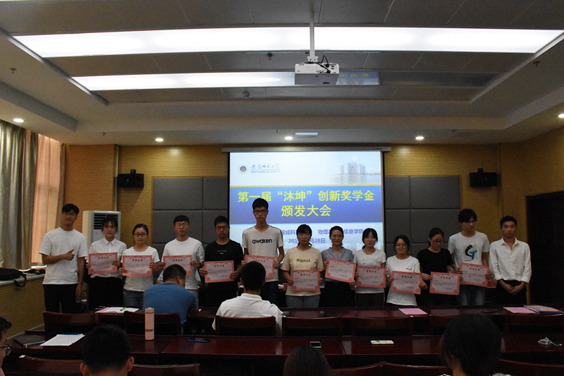 许新胜副院长简要介绍了“沐坤”科技有限公司捐资助学的善举缘由和学院创新奖学金的设置、评审情况;沐坤科技有限公司谷鹏程先生宣读了颁发决定,并与吕敬先生一同向获奖学生颁发了荣誉证书。2016级自动化专业韩梦婷同学作为获奖学生代表发言,她表达了对沐坤科技有限公司捐资助学的崇高敬意,与在场同学分享了大学以来的经历与感悟,表明踏实读书、不断创新的决心。随后,汪志荣简要介绍了沐坤集团与必赢国际共建的“新媒体物理教育创新实验室”的建设情况。沐坤公司计划分批援助价值百万元的全套应用和开发软件及新媒体物理创新教育产品,去年暑期开始建设并逐步完成,预计下学期交付使用,该实验室旨在探索新媒体教育的创新,以及新技术条件智慧教育的发展。