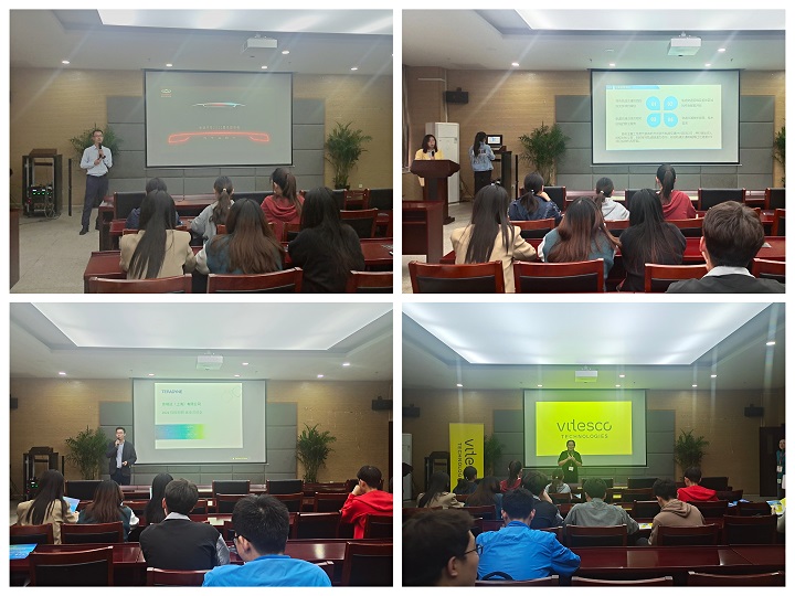 会上,四家企业的招聘负责人以企业发展史为切入点,由浅入深,层层递进,对员工福利、员工培训、员工薪资以及员工生活等都作了详细讲解,全方位的向参会毕业生展现了公司面貌与精神价值观。现场同学认真聆听,并就专业岗位适配度、工作内容、职业发展培养、薪酬待遇等方面与招聘人员进行了热烈的互动交流。会后,奇瑞汽车招聘工作人员对收集上来的简历进行初步筛选并现场面试,其余公司将在后期陆续开展面试。