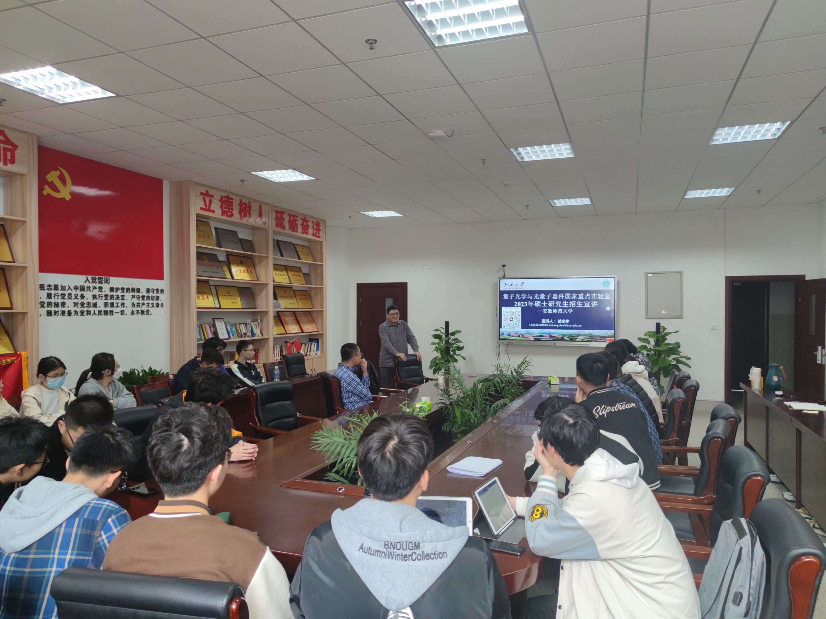 会上,徐忠孝教授围绕量子光学与光量子器件国家重点实验室的发展历程、师资人才、科研水平、研究方向等基本情况,向与会师生做详细介绍,重点介绍实验室的招生与培养方案以及毕业生发展情况,鼓励和欢迎我院学子报考、调剂山西大学相关学位点。