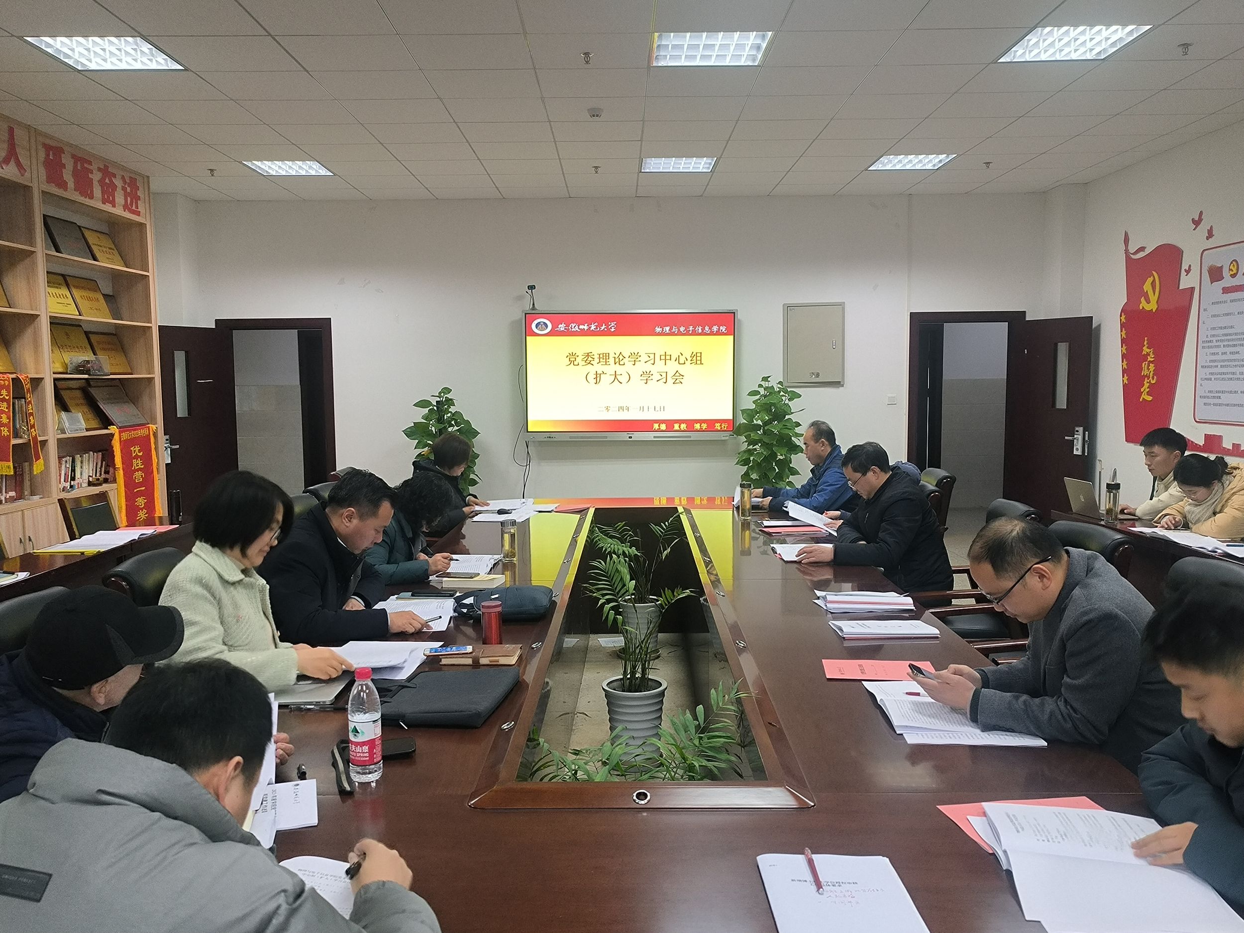 1月17日下午,必赢国际党委召开理论学习中心组(扩大)学习会。院领导班子成员、党委委员、纪委委员、支部书记及支部委员参加会议。院党委书记李娟主持会议。