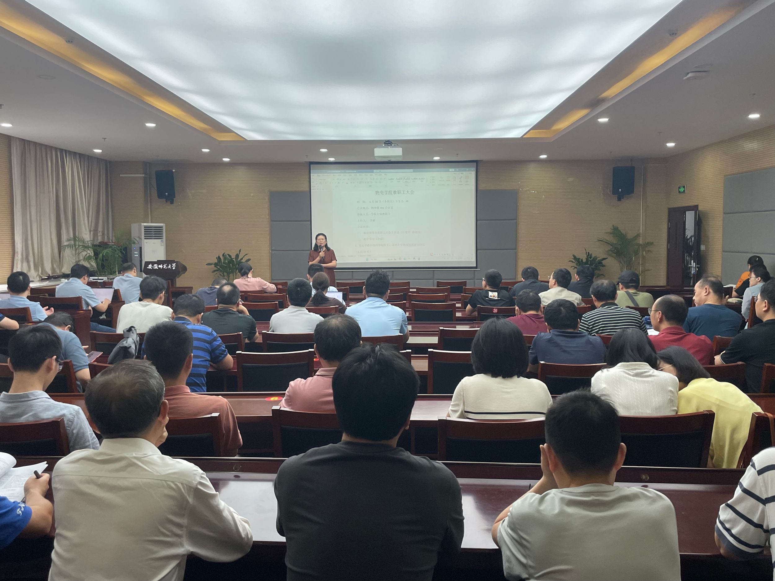教学副院长张爱清针对学生期末考试进行考风考纪专题教育,希望全体监考教师高度重视期末考试工作,强化责任意识,认真履行监考和试卷评阅职责,同时就审核评估、 招生宣传、师范生小学期等工作进行了布置。科研副院长盛晓伟布置了“双特色”项目和安徽省科技奖申报等工作。学院党委副书记、纪委书记黄友生通报了学院2024届毕业生就业、升学情况,并就后续就业帮扶推进、暑期留校学生安全教育管理、班主任工作安排等作了通报和安排。会议还就学期末和暑期实验室安全、假期教职工出国境管理规定、2024年优秀教职工暑期疗休养活动等工作逐一强调。