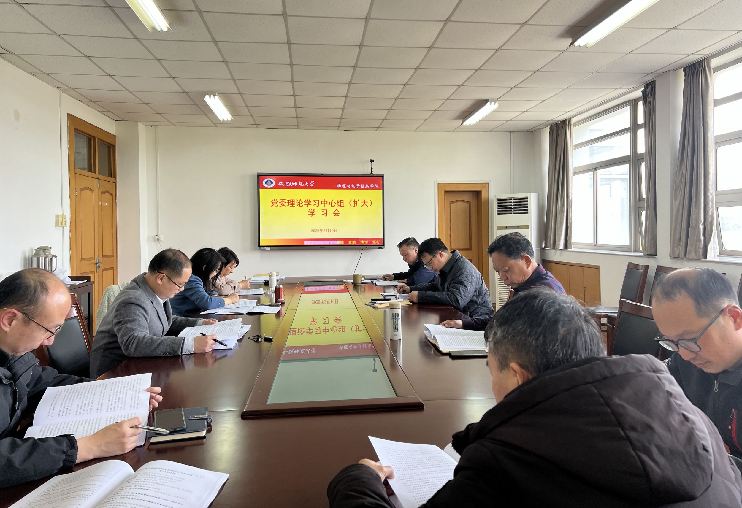 3月10日下午,必赢线路检测3003no1召开党委理论学习中心组(扩大)学习会,集中传达学习全国两会精神和《教育强国建设规划纲要》,传达学习上级有关会议和文件精神,研究布置学院落实工作。党委副书记、院长吕建平主持会议并讲话。院党委委员参加会议,各系主任列席会议。
