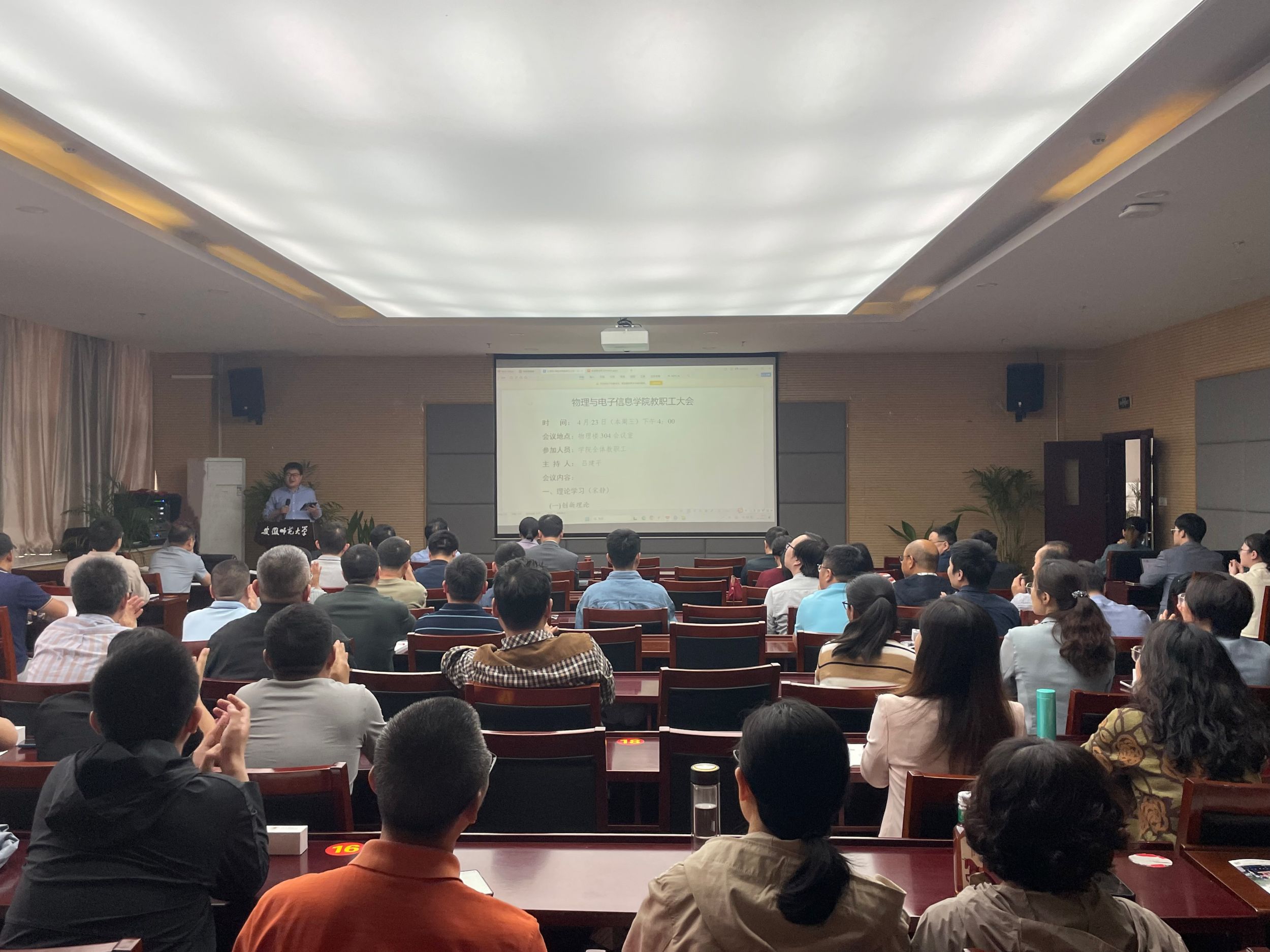 4月23日,必赢国际在物理楼304会议室召开全体教职工大会,开展政治理论学习,总结前期工作,布置近期任务。学院全体教职工参加会议。会议由院长吕建平主持。