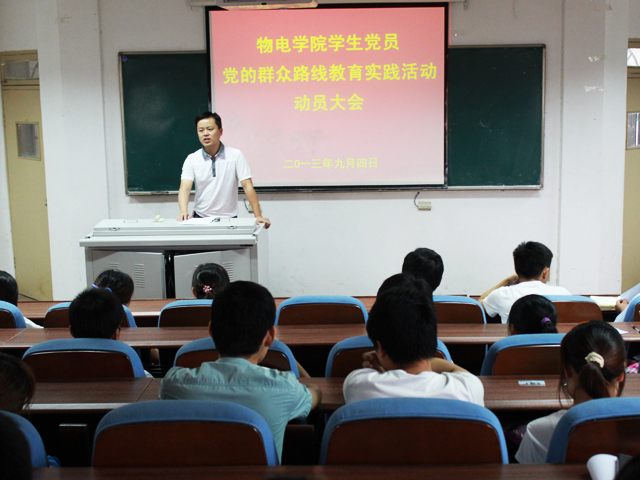 动员会上,学院党委副书记王传辉从开展党的群众路线教育实践活动的重大意义开始谈起,详细阐述了教育实践活动的目标任务、总体要求和基本原则。他还向全体党员同志介绍了学院教育实践活动的开展情况。并要求学生党员要统一思想,着力在学习提高上下功夫。他还要求各支部书记按照“两手抓、两不误、两促进”的工作要求,组织学生党员对照学习计划表,按时保质保量地完成补学任务。