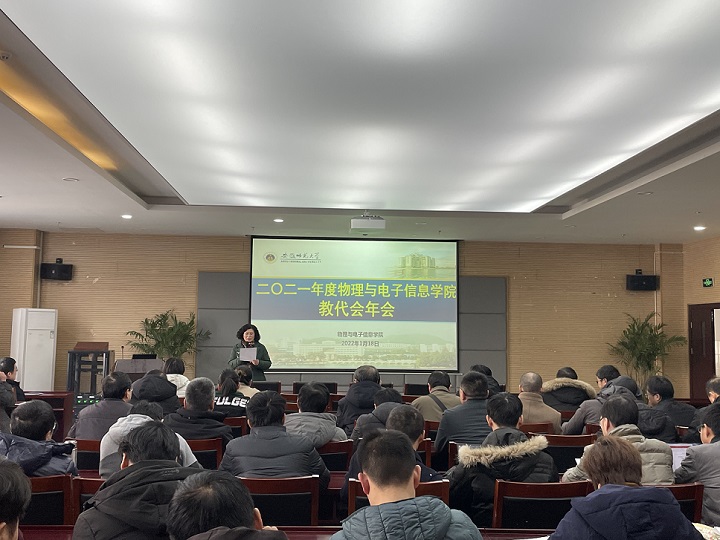 1月18日下午14:30,必赢国际在物理楼304会议室召开2021年度教代会年会,全体教职工共聚一堂,共同回顾总结学院2021年度工作,会议由学院党委书记李娟主持。