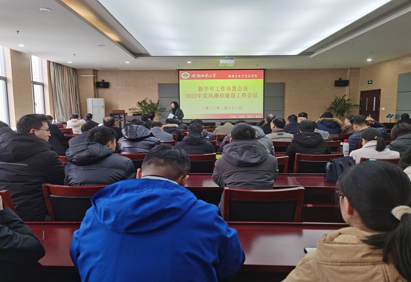 院长郑贤锋首先回顾了假期工作,部署了2022年重点工作,他强调学院今年将进一步加强党的建设,积极开展迎接、学习、宣传党的二十大行动;进一步提高人才培养质量,积极推进人才培养方案修订、质量工程项目建设、学科竞赛、考研就业,启动工程认证和学位点专项评估准备工作;进一步强化师资队伍建设,坚持引育并举,继续抓好高层次人才引进和省级以上人才项目的培育,加强师德师风建设;进一步加强科学研究工作,组织申报教育部重点实验室,抓好安徽省科技奖和国家自然科学基金的申报工作;进一步优化学院内部治理结构,完善相关制度,压缩办公用房。各分管领导分别就近期“三教落实”、科研工作、学生考研就业等工作以及实验室安全专项行动进了具体安排与布置。