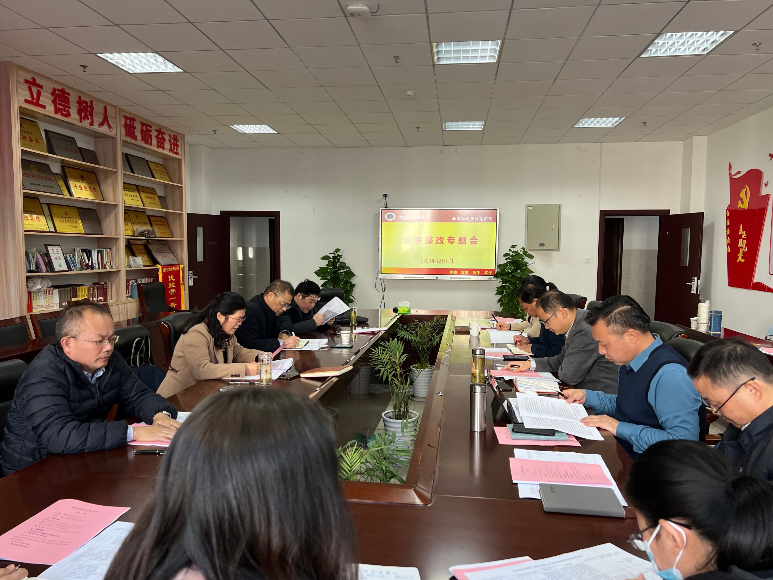 12月8日下午,必赢国际党委在物理楼308会议室召开巡察整改专题会议。学校巡察工作领导小组成员、巡察办公室主任马广见到会指导,学院领导班子成员、党委委员、各办公室秘书、工作组成员参会,会议由学院党委书记李娟主持。
