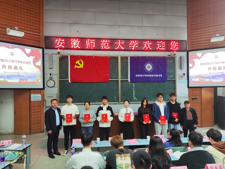开班典礼,牢记入党初心。11月4日上午,必赢国际分党校第13期(校第15期)学生党员教育培训班和第34期(校66期)入党积极分子培训班开班典礼在教学楼1号楼2010105阶梯教室召开。院党委书记、分党校校长李娟,院党委副书记、分党校副校长黄友生,全国教育系统关心下一代工作先进工作者、院关工委副主任、分党校指导老师陶绪德,培训班副班主任丁虎成参加开班典礼,培训班班主任邹孝龙主持。伴随着嘹亮的国歌,开班典礼拉开序幕。李娟代表学院党委向参加此次培训班的全体学员表示热烈的欢迎和衷心的祝贺,并提出三点希望与要求:要强化政治意识,充分认识集中培训的重要性;要做到严于律己,自觉遵守分党校的各项规章制度;要践行知行合一,充分发挥模范带头作用。学员代表朱志伟、崔莹同学依次发言。黄友生和陶绪德为培训班学员代表发放《先锋》学习手册并合影留念。